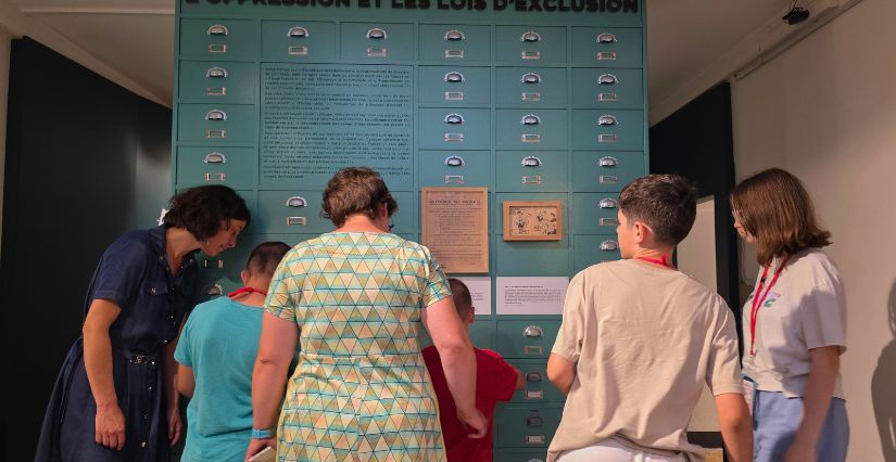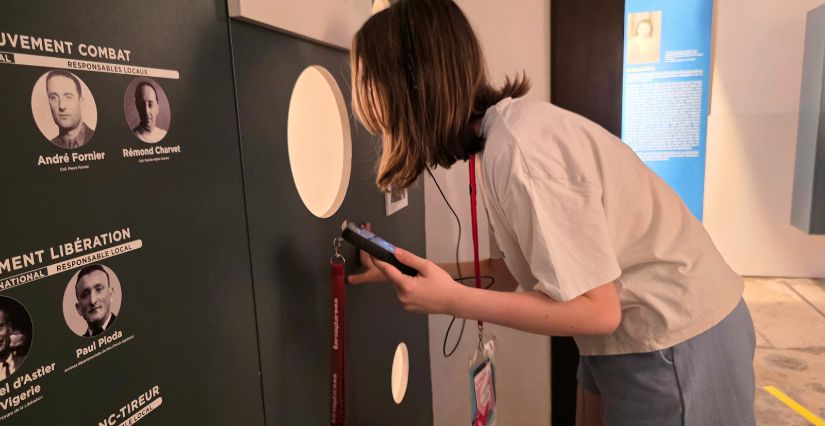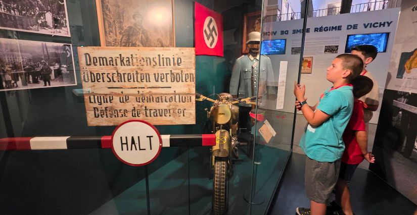 Le parcours immersif facilite la compréhension de cette période complexe pour les enfants. Le régime de Vichy se découvre à travers une armoire à archives remplie de tiroirs à ouvrir. Les témoignages de résistants se dévoilent sur des bornes sonores. La résistance dans l’Ain prend vie grâce à de grandes vitrines d’objets, des bornes tactiles et la reconstitution d’un camp dans le Bugey.