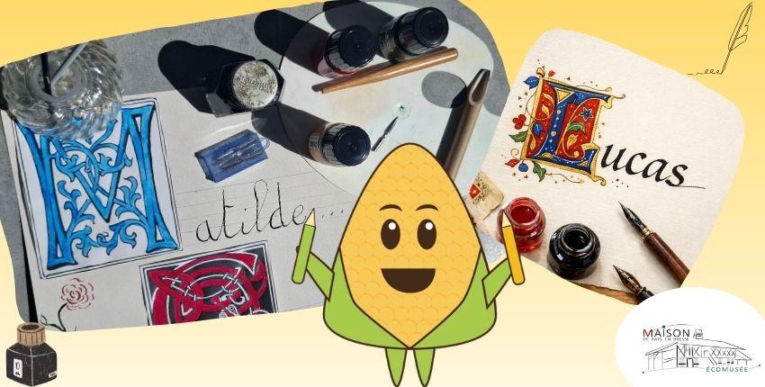 Atelier Calligraphie le 16 avril 2026 à l'Écomusée (Bourg-en-Bresse) : Enluminure au Moyen-Âge, plume Sergent Major et goûter au feu de bois. Dès 6 ans. Réservez en ligne !